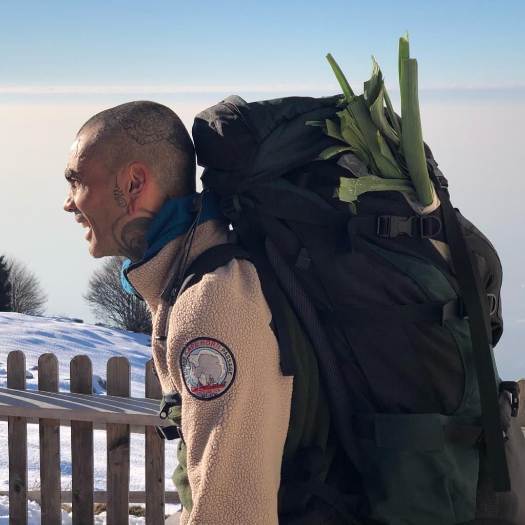 Noi siamo passati da essere tatuatori e musicisti a Londra a fare una vita in montagna. Ho conosciuto Zeudi a Londra, poi lei è venuta a trovarmi in Portogallo, e io sono venuto a trovarla qua innamorandomi del territorio. Zeudi viene da una famiglia di malgari e di pastori, e stando qua con lei ho conosciuto quel tipo di vita. Nei miei viaggi ho sempre provato ad allontanarmi dalla civiltà, dai centri urbani, e così è successo anche qua. La mamma di Zeudi e il suo compagno gestivano questa malga prima di noi. Dopo essere rientrati a Londra abbiamo avuto nostro figlio, ma dopo poco siamo riusciti a tornare qua e abbiamo preso in gestione la malga. Ma non volevamo gestire soltanto la malga, il nostro progetto era di una montagna diversa. Non abbiamo mai avuto dubbi che fosse fattibile. Sin dall’inizio abbiamo pensato che non avesse senso tenerla chiusa per la maggior parte dell’anno.