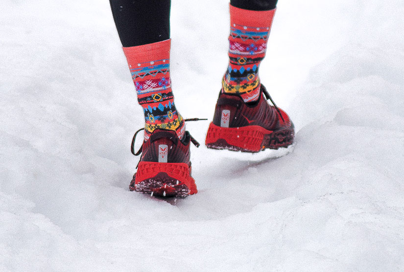 «Durante le discese sento le pietre e la terra battuta sotto i piedi. Le mie scarpe sono troppo basse, e quelle enormi Hoka che indossano quasi tutti sembrano invidiabilmente comode. Forse saranno i miei piedi ad abbandonarmi per primi: ho scelto le scarpe sbagliate.»