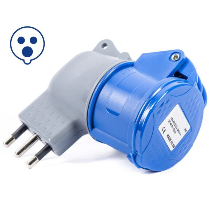 L'adattatore a "pettine" 16A consente di passare da una presa di tipo industriale ad una più comune.