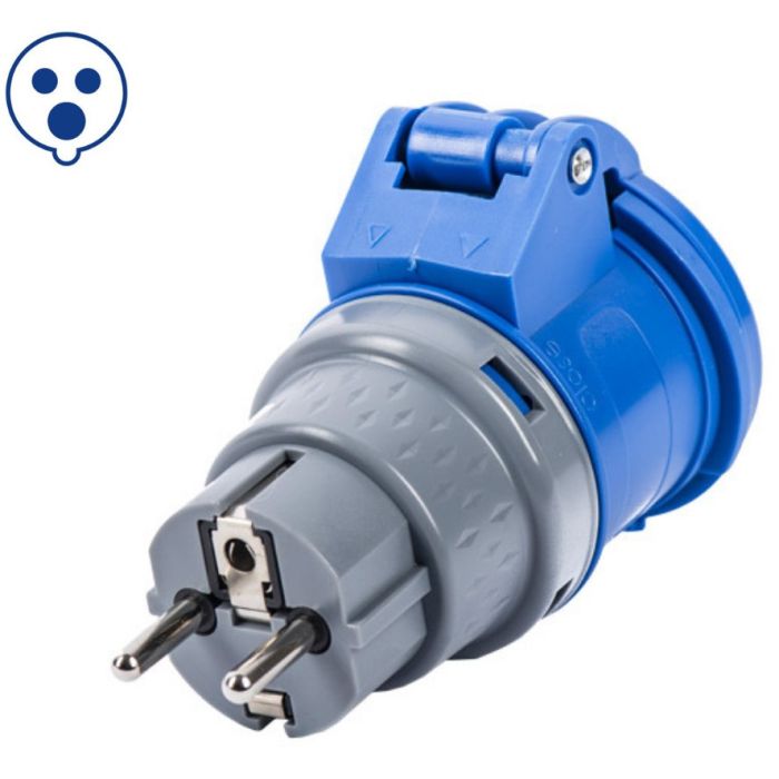 L'adattatore SCHUKO / presa CEE permette di collegare tipi diversi di apparecchi ad una normale presa.