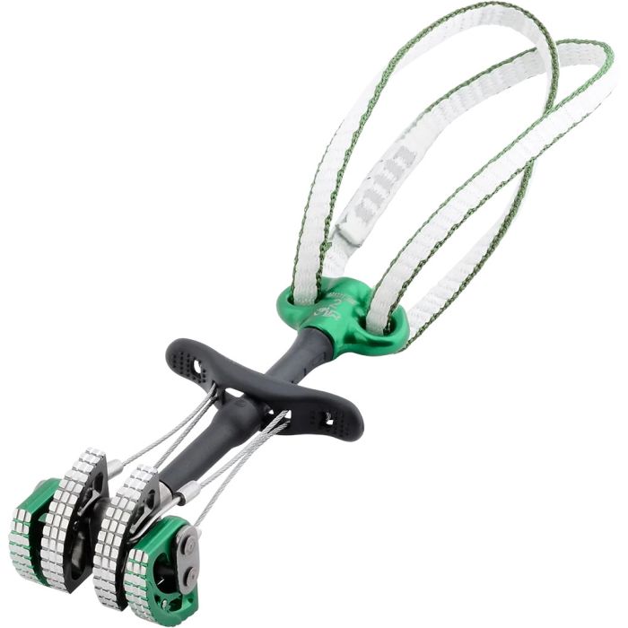 La fettuccia esterndibile in Dyneema facilita lo scorrimento della corda e può essere utilizzata singolarmente o raddoppiata per una lunghezza maggiore dell'ancoraggio.