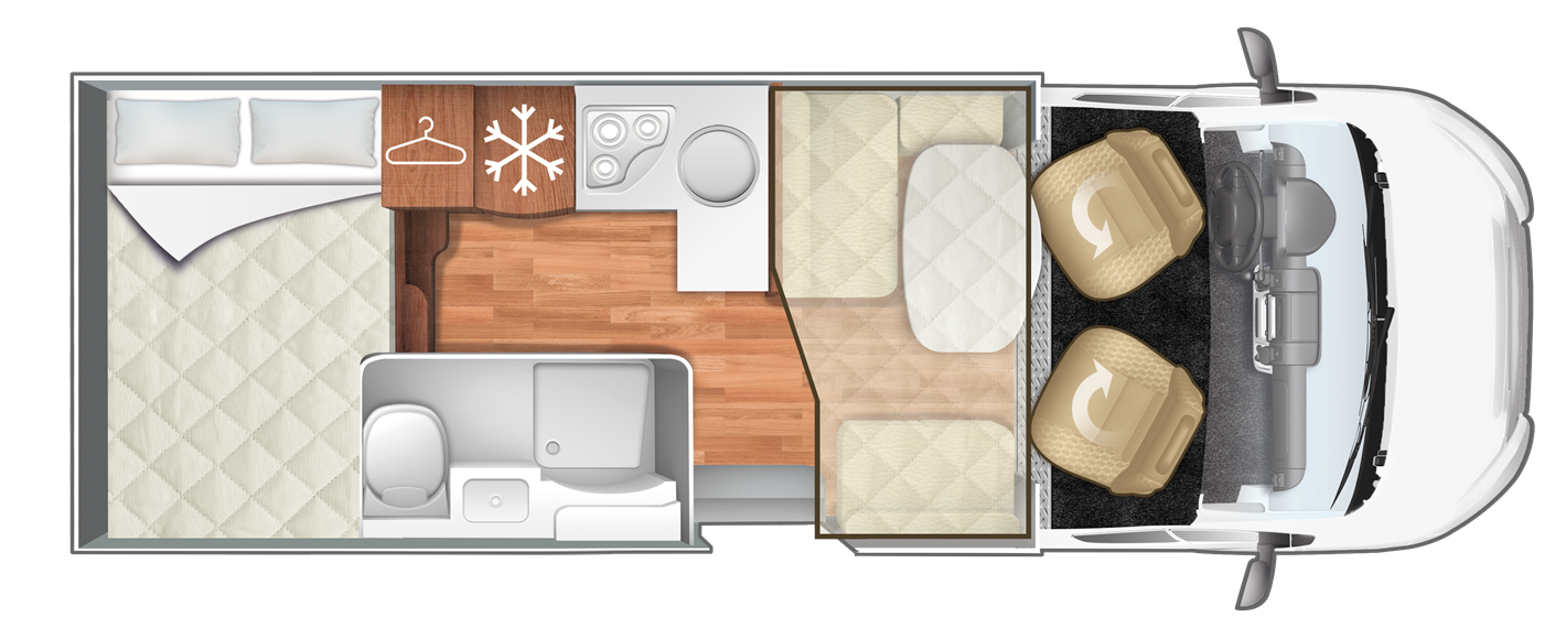 Accessori: tendalino, clima cabina e abitacolo, smart tv, vano garage, portabici 3 posti posteriore.