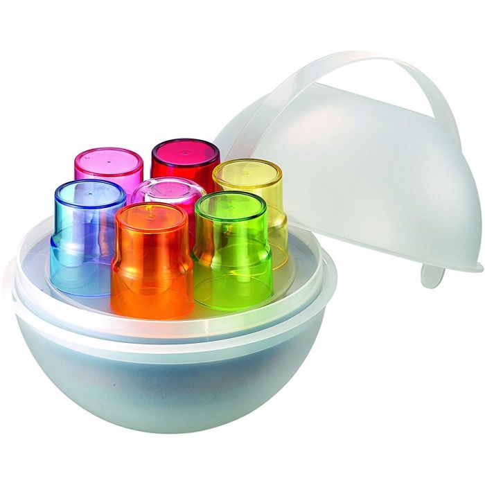 Composto da 2 contenitori, 1 vassoio, 6 piatti piani, 6 piatti fondi, 6 piatti frutta e 6 bicchieri.
